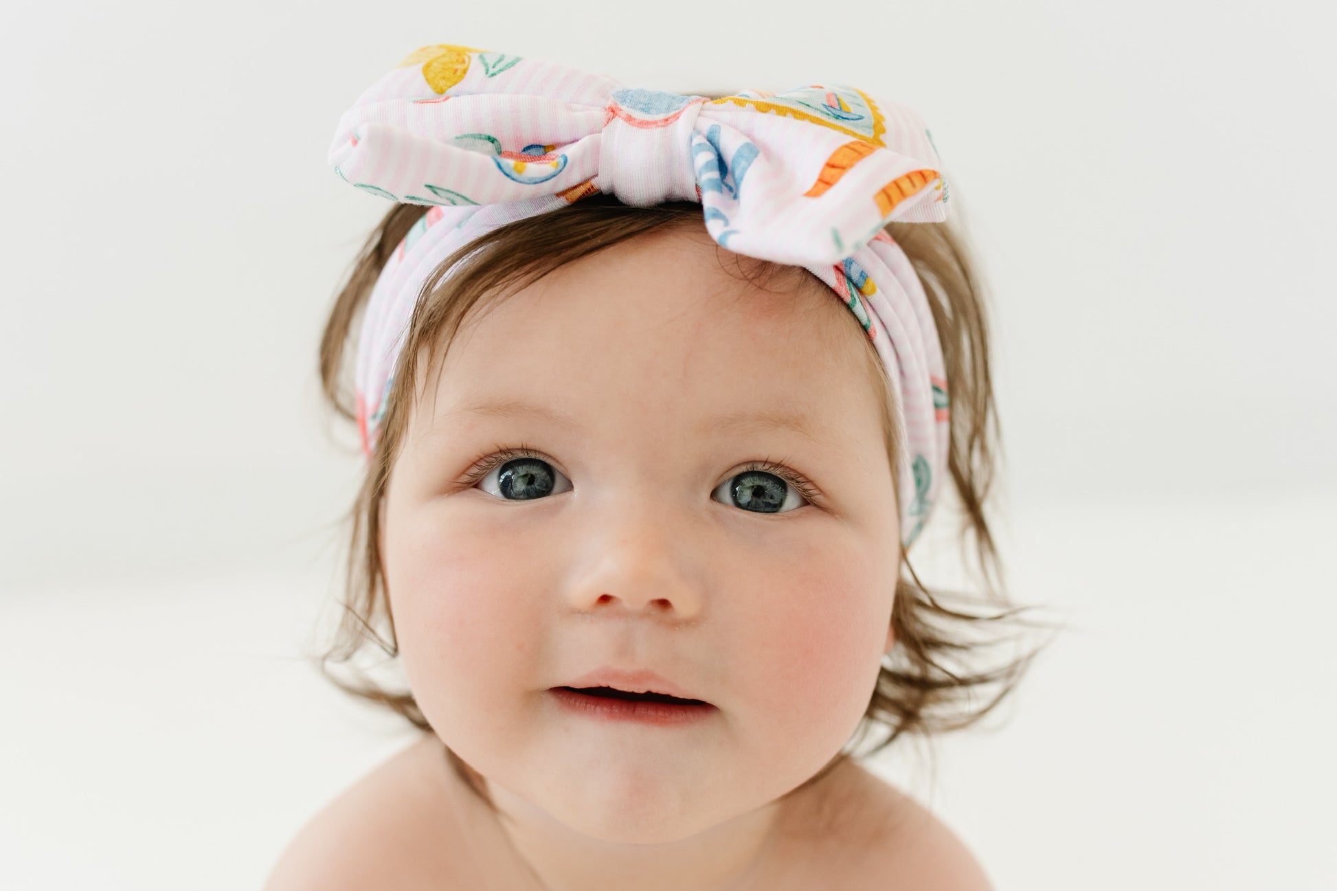 Top off the look with a bow as sweet as the Italian sunshine! This oversized bow headband showcases the cheerful La Dolce Vita print, tying together any outfit with a pop of playful charm. Perfect for keeping hair in place while adding that extra dose of cuteness.